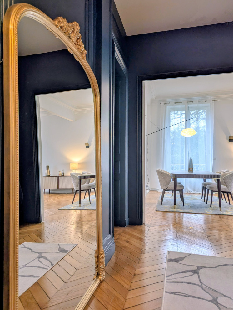Ce grand appartement haussmannien, situé dans un ancien manoir de la région parisienne proposait déjà de très beaux volumes.